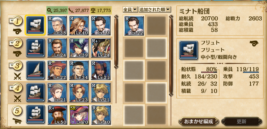 課金しなくても気長にやればSRでるってのは嬉しい反面、「いいのかそれで、運営!」と思うのもまた事実。いつかSRがでるなら別に課金しなくてもなぁ・・・。あーでも、SRこんなにつよいのかー、もうちょっとほしいかも・・・とおもわせて課金心をくすぐる手段なのかもしれない。 まぁでも、課金しなくても強い(?)航海士が手に入るのは正直嬉しいですな。