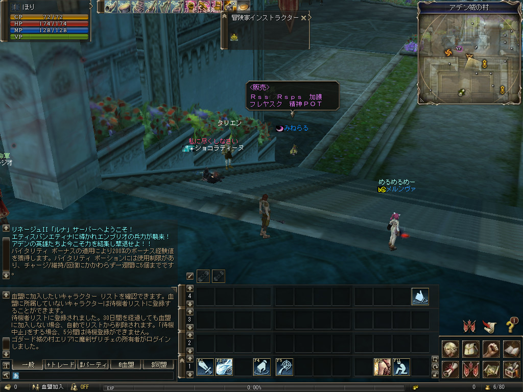 モチュールが英雄になっていたり(コレは事前にYOUちゃから教えて貰っていたけど)、ヴェナレスがCAに移籍していたり、相変わらずアデンにみねらる露店があったりと変わったものと変わらないものを目で見てログアウト