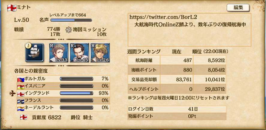 まぁ、追加シナリオの海賊が倒せなくて寄り道にはしりましたけどねー。大航海時代はむしろ寄り道が楽しいからしょうがないね、うん